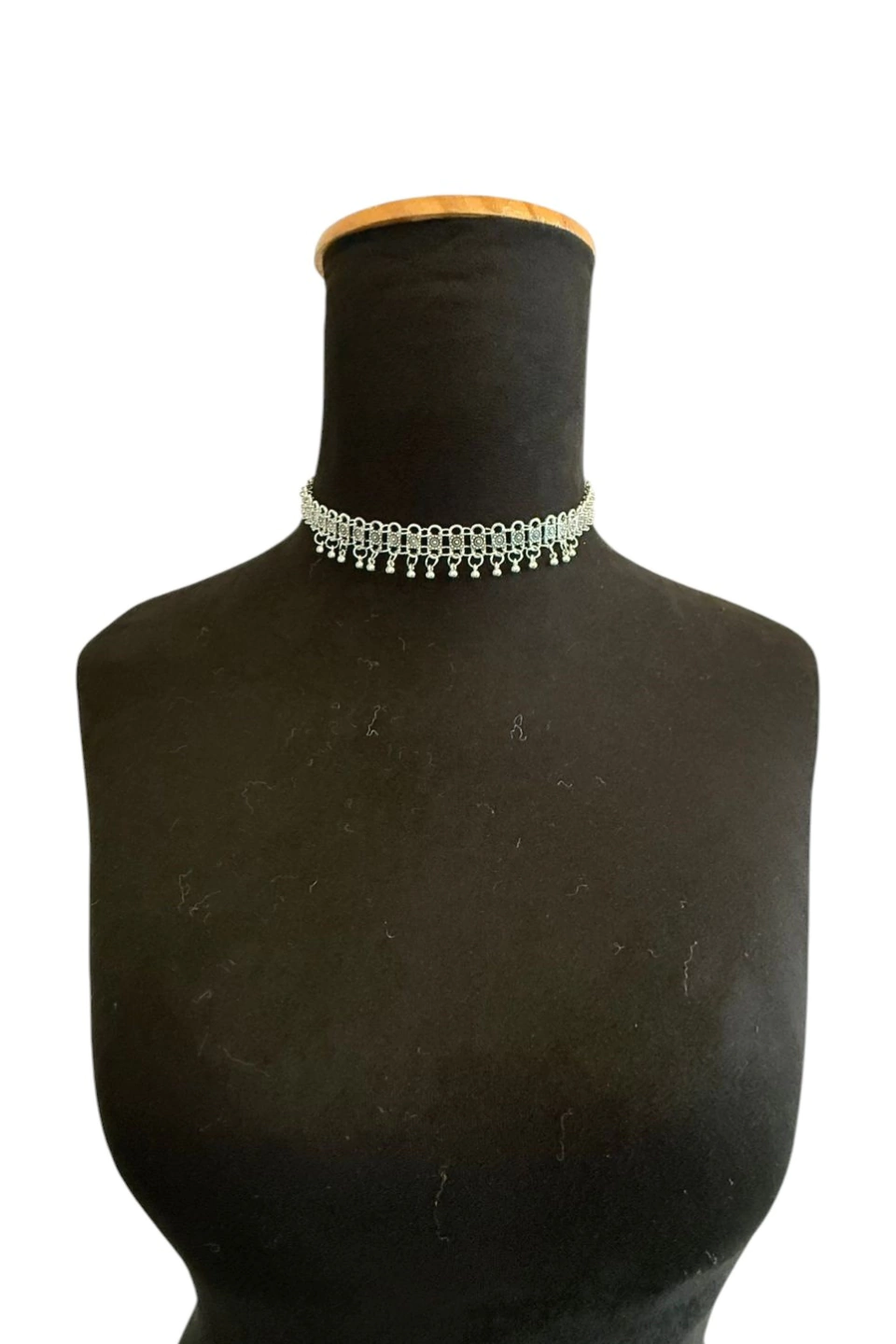 Inspirado nas joias marroquinas, o Colar Chocker Medina foi desenvolvido para expressar o magnetismo e a força do feminino místico. Sua estrutura em metal prateado com detalhes delicados traz o equilíbrio entre elegância e poder, evocando o charme exótico das medinas e o brilho das noites no deserto.